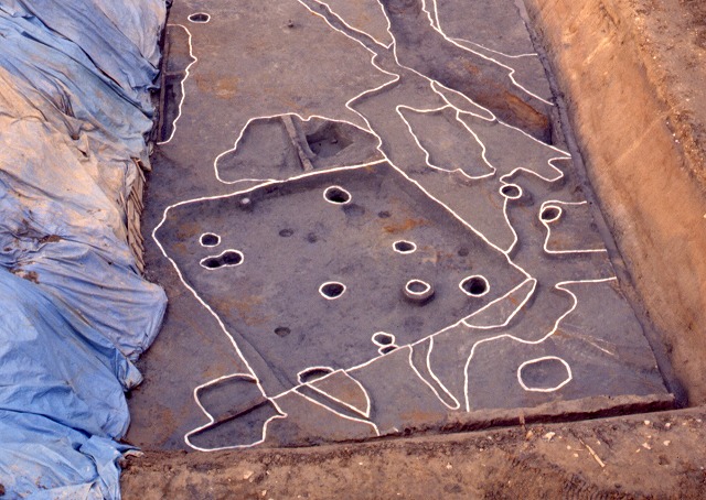 八尾市域の西方、中央環状線(近畿自動車道)の西、大阪市域と接する竹渕地区にある遺跡である。この地域は「和名抄」にみえる渋川郡「竹渕郷」にあたり、古い地名であることがわかる。それゆえ、大阪市域にも遺跡範囲が広がることが予想される。本遺跡は一九八二年(昭和五七)、市立竹渕小学校の校舎増築に伴う調査で、古墳後期の、一辺約五メートルの方形の竪穴住居跡一棟と、焼土壙・土壙・柱根が残存する柱穴・弓状に曲がる溝が検出され、土師器(壺・羽釜)、須恵器(壺、杯身・蓋、器台)などの遺物も出土した。また近世の井戸なども検出されている。遺跡の範囲の確認や各時期の遺構・遺物が埋没しているとおもわれ、今後の調査が望まれる。【出典:『八尾市史(前近代)本文編』(八尾市史編集委員会、八尾市役所 昭和六十三年十月二十七日発行)】より抜粋 校区の北側には国道25号が東西に走り、東側には主要幹線道路の大阪中央環状線とその上を近畿自動車道が南北に走っています。一級河川平野川が東西に流れ、校区の周りを囲まれるように大阪市と接している比較的東西に長い地域です。校区内には公共交通機関はなく、最も近い駅としてはJR加美駅(JR関西本線)、JR新加美駅(JRおおさか東線)、出戸駅(地下鉄谷町線)がありますがいずれも市域外です。【出典:『竹渕小学校区地域レポート』(平成21年6月 コミュニティ推進スタッフ2009年)より抜粋】